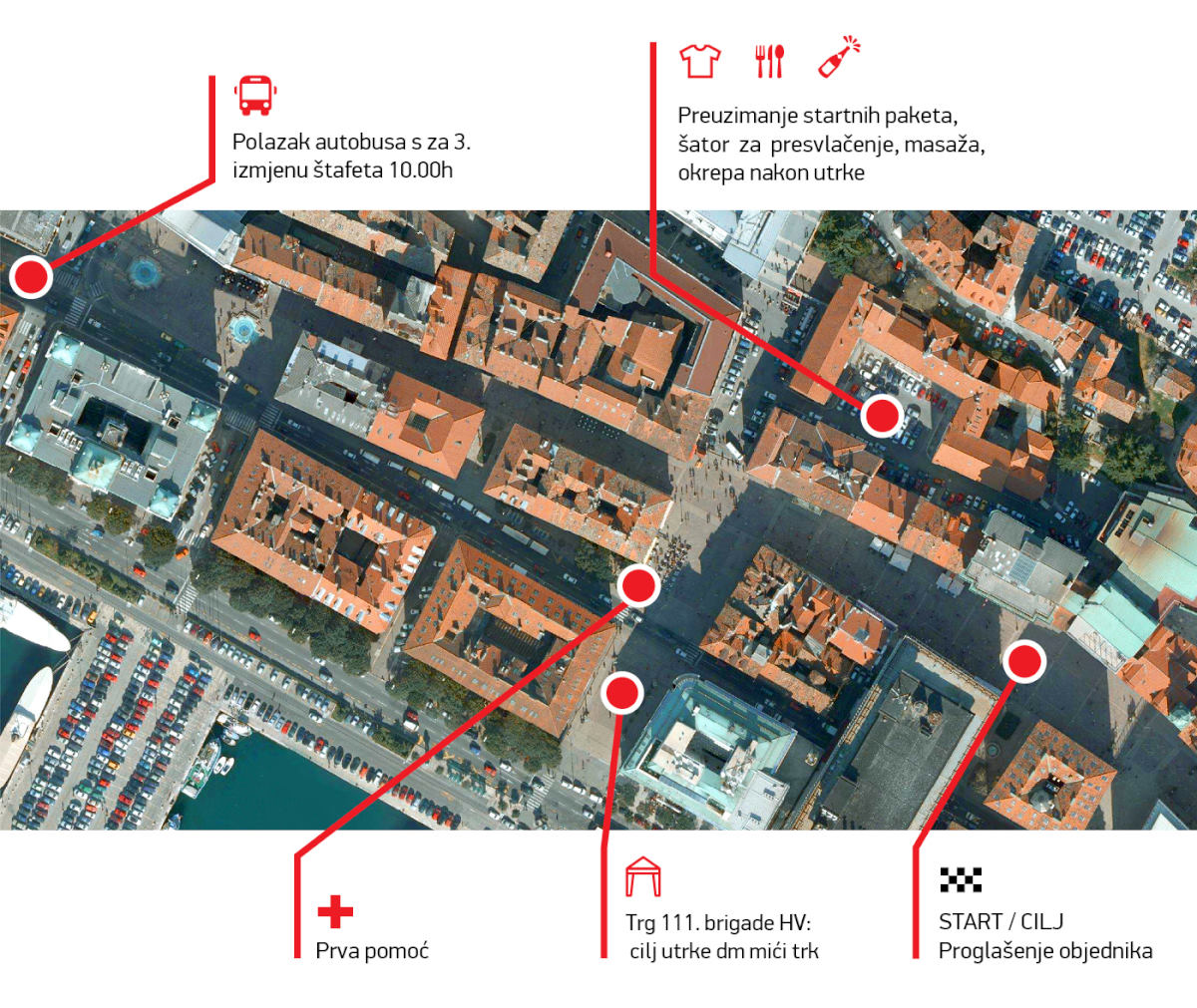 u šatoru organizatora ispred zgrade Terminala na riječkom lukobranu od 8 do 9:50h na dan utrke.