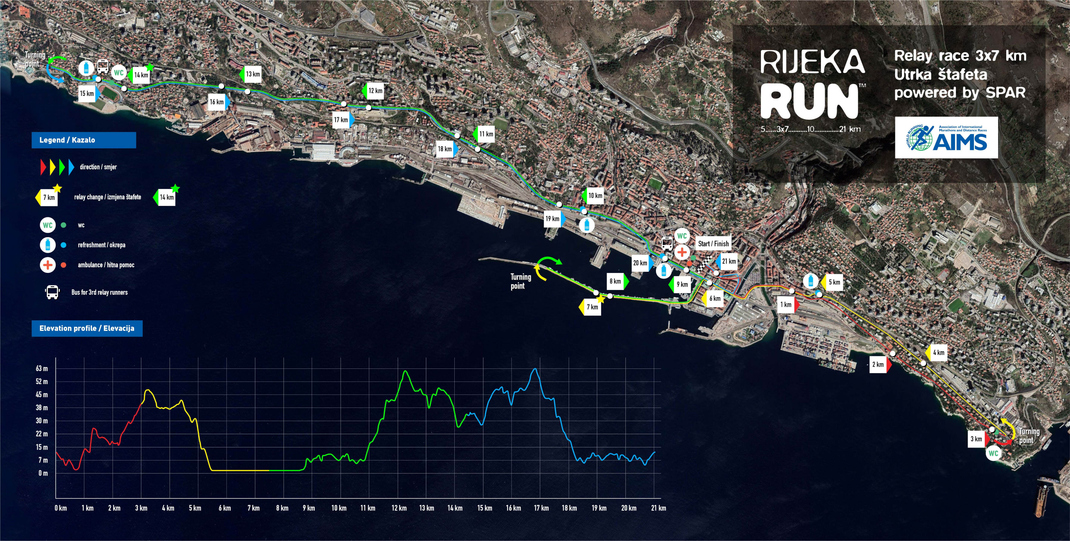 - Tekači 3. predaje štafete se bodo vkrcali na avtobus, ki bo ob 12.00 odpeljal z avtobusne postaje na Trpimirovi ulici. Avtobus jih bo pripeljal do 14. kilometra, kjer bodo prevzeli štafeto od 2. predaje.
